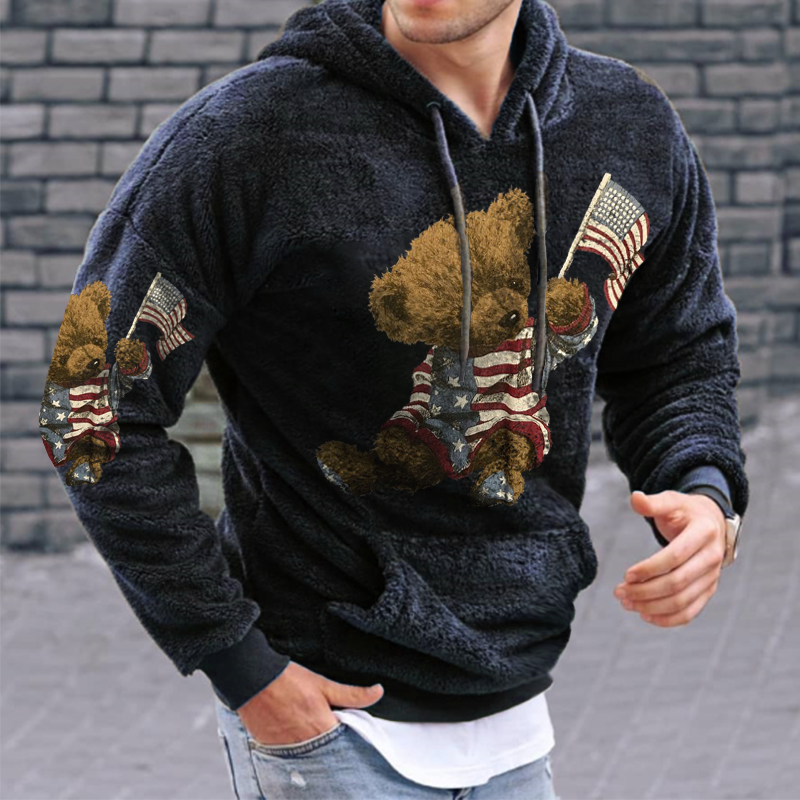 American Flag Bear Lamb Wool Warm Hoodie