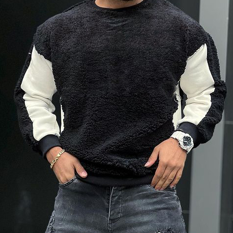 Lamb Velvet Stitching Crew Neck Sweatshir