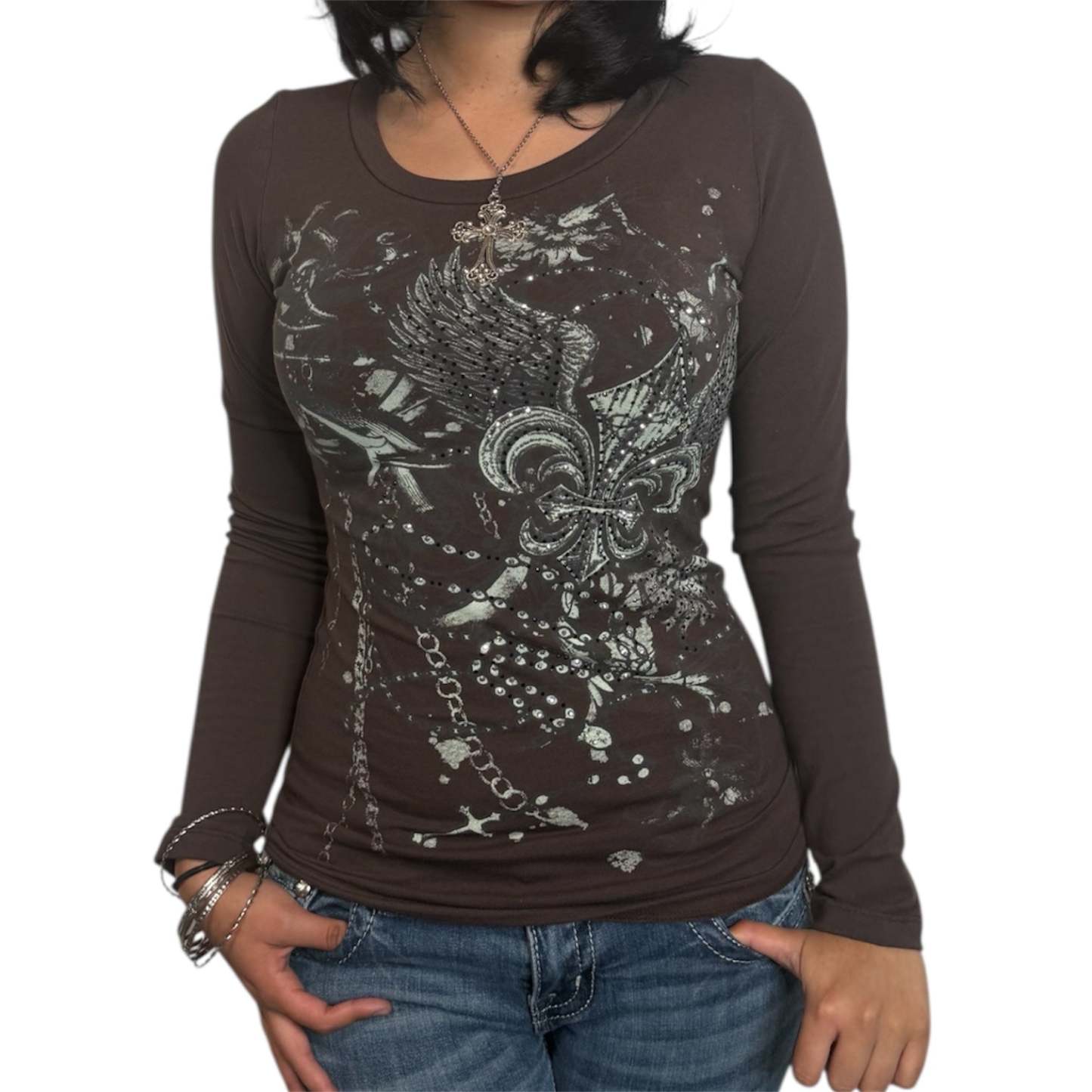 Bella Rhinestone Long Sleeve Brown