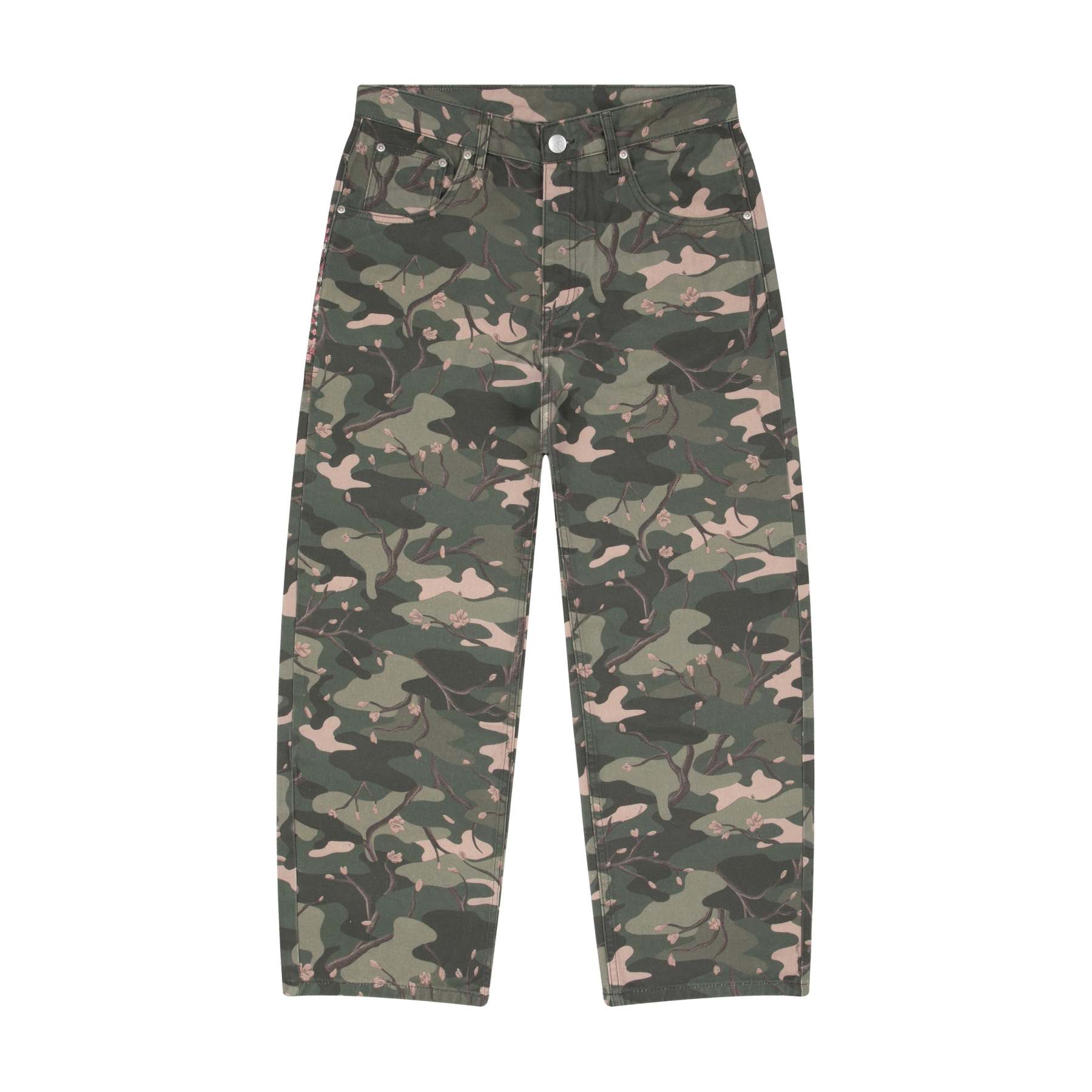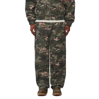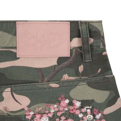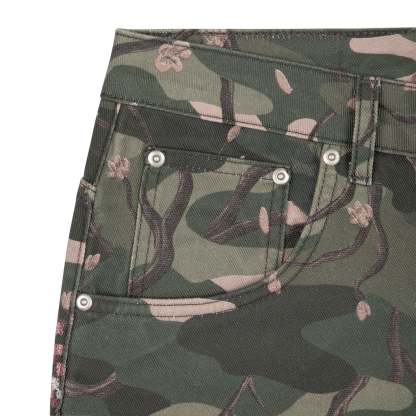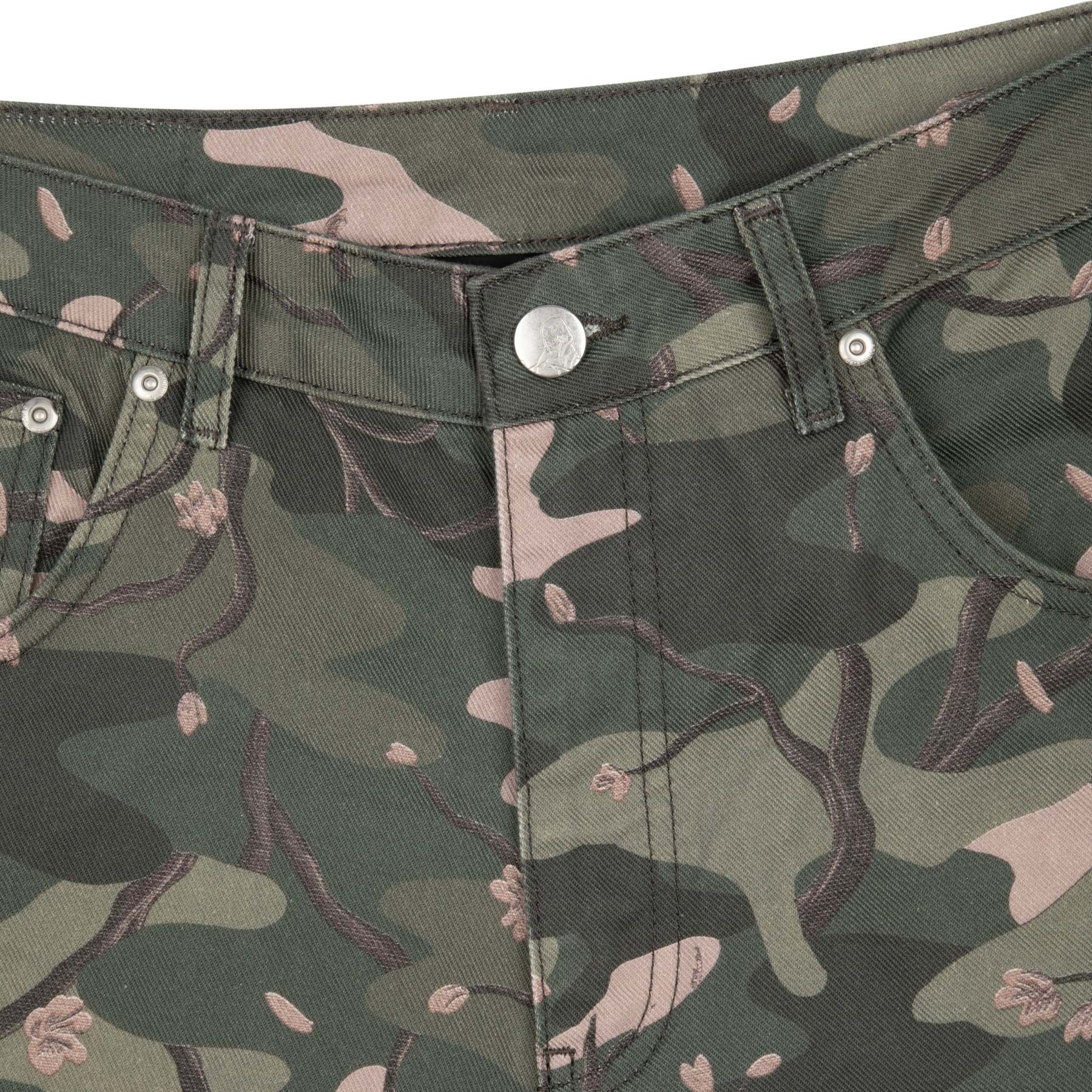 14,5oz denim / 100% cotton / camo printed fabric / embroidery on back / embossed printed leather patch / wash inside out / fits true to size