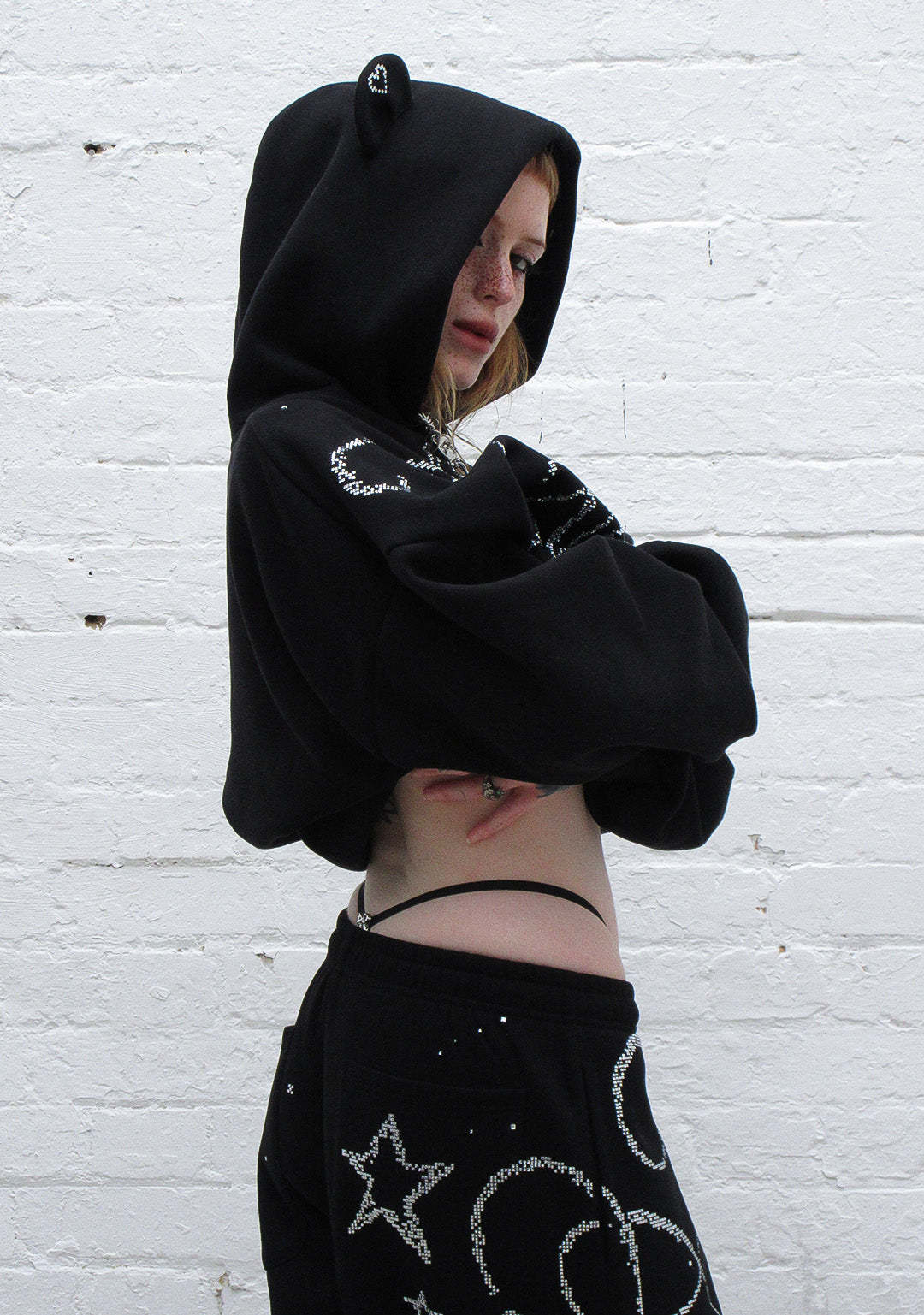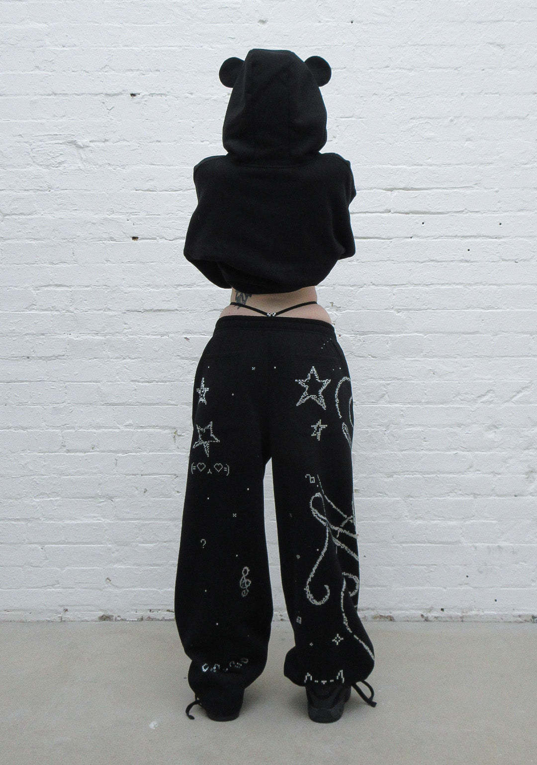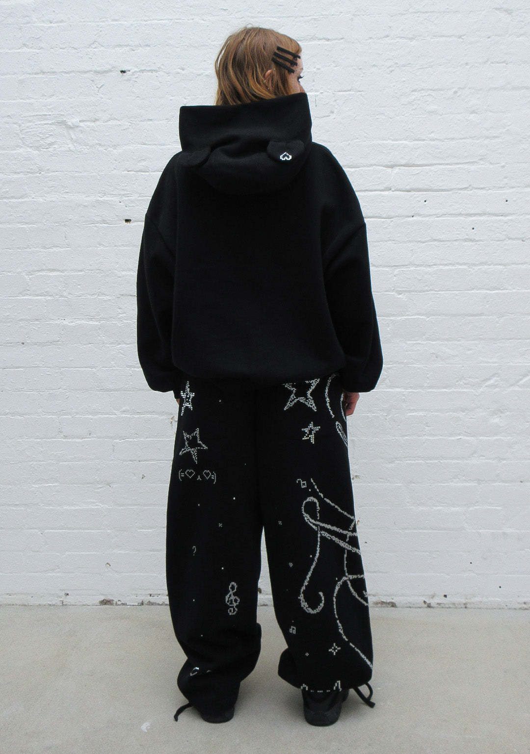 DREAMER RHINESTONE TEDDY PULLOVER HOODIE BLACK