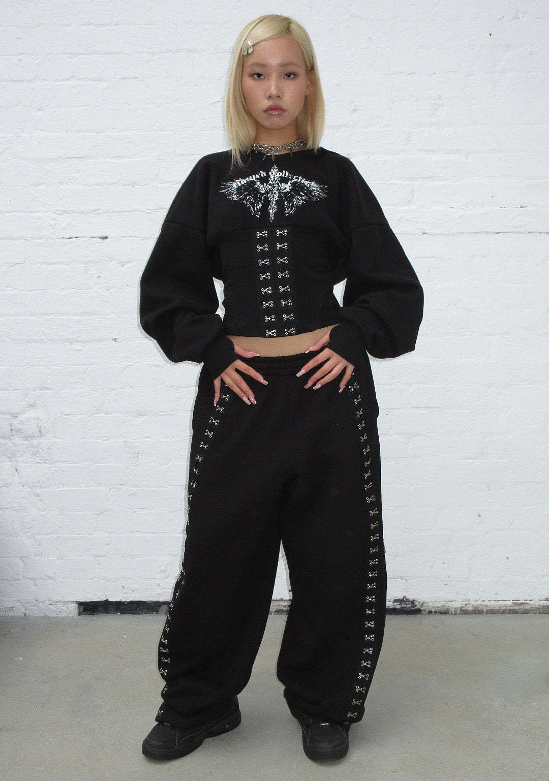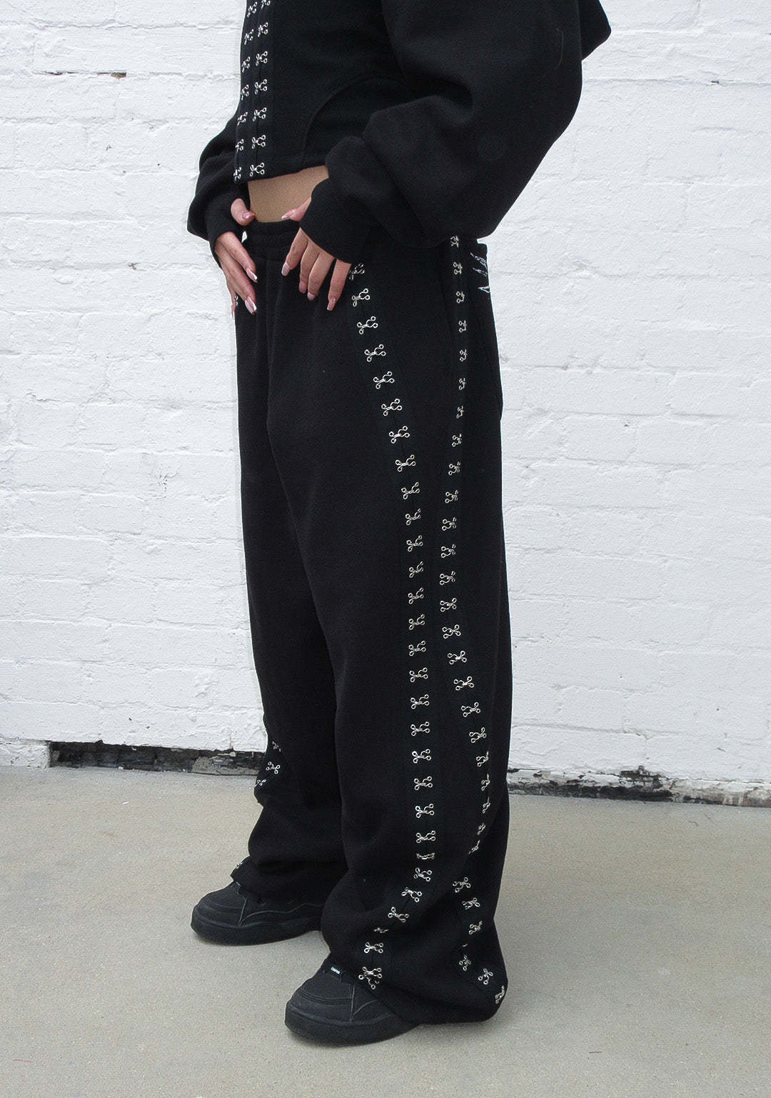 ★ Embellished with hook-and-eye detailing down sides