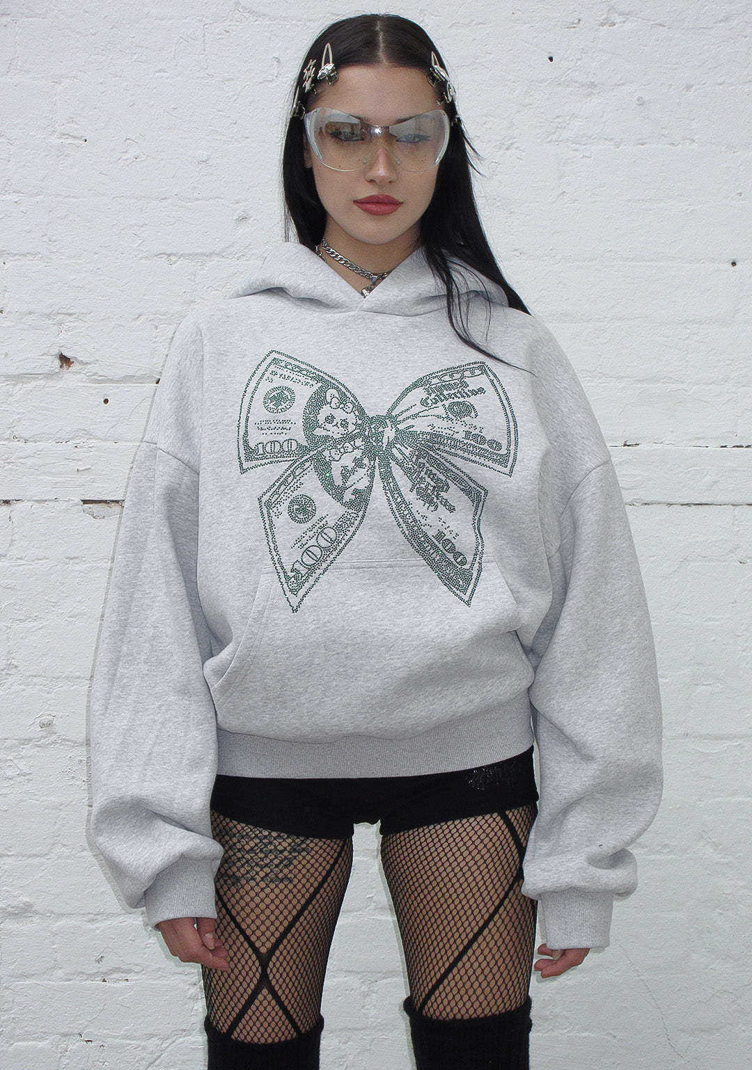 ★ Embellished with green rhinestone dollar bill bow design
