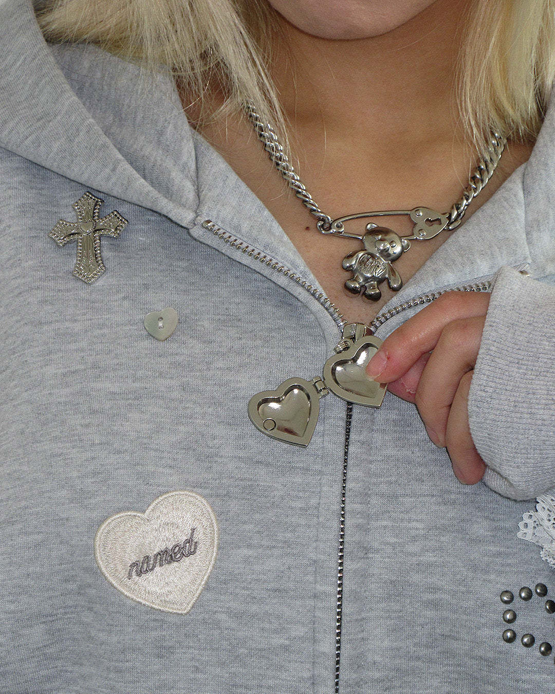 ★ Embellished with custom WHISPER buttons, logo embroidery and print in heart motifs