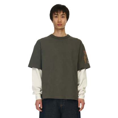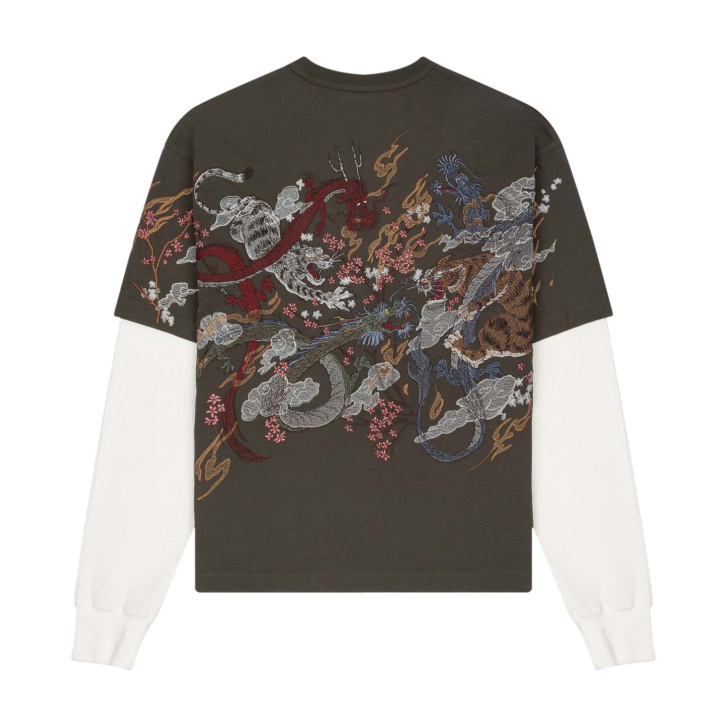260gsm fabric / 100% preshrunk cotton / waffle sleeves (100% cotton) / embroidery on back and sleeves / fits true to size